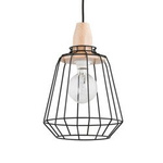 Druciana lampa kratka PEKA czarna/drewno śr. 24cm